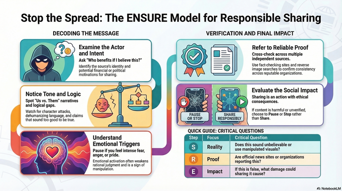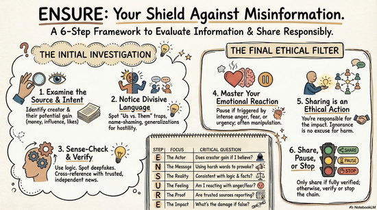 By applying ENSURE, individuals move from passive consumption to responsible participation, choosing verification over impulse and construction over destruction. This fosters critical thinking and builds a more resilient, informed society.