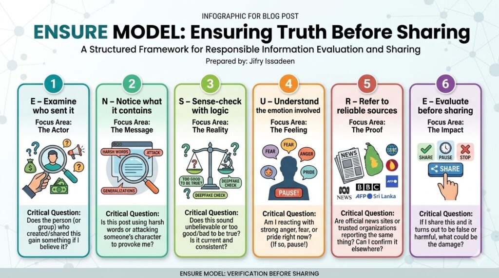 The ENSURE Model provides a structured and practical response to the challenges of misinformation, manipulation, and social division in the digital age. In an environment where attention and outrage can be monetized, ethical information behavior becomes a civic duty.